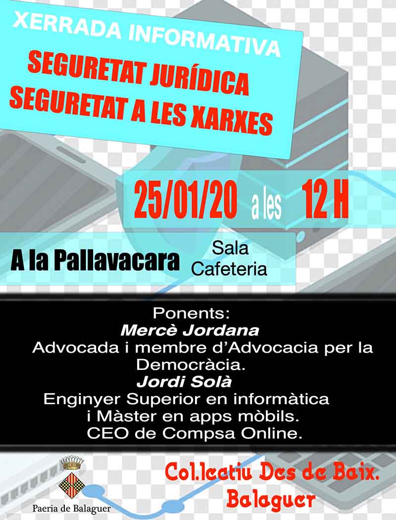 Xerrada informativa: Seguretat jurídica, seguretat a les xarxes dissabte 25 de gener de 2020