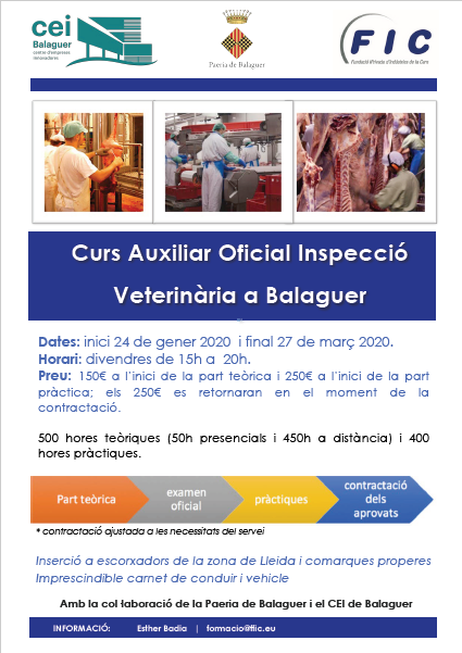 El CEI de Balaguer acollirà des del 24 de gener un curs d'auxiliar de veterinària. Abans, i per tal que els possibles participants coneguin la feina, es farà el proper dilluns, 20 de gener, una visita a les instal·lacions de l'Àrea de Guissona.