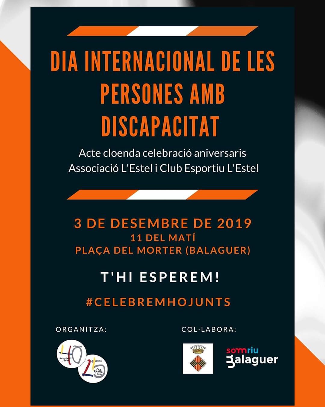 L'Associació l'Estel de Balaguer clourà la celebració dels aniversaris aquest dimarts dia 3 amb una performance sorpresa en motiu del Dia Internacional de les Persones amb Discapacitat. Es farà a les 11 del matí al Morter de Balaguer