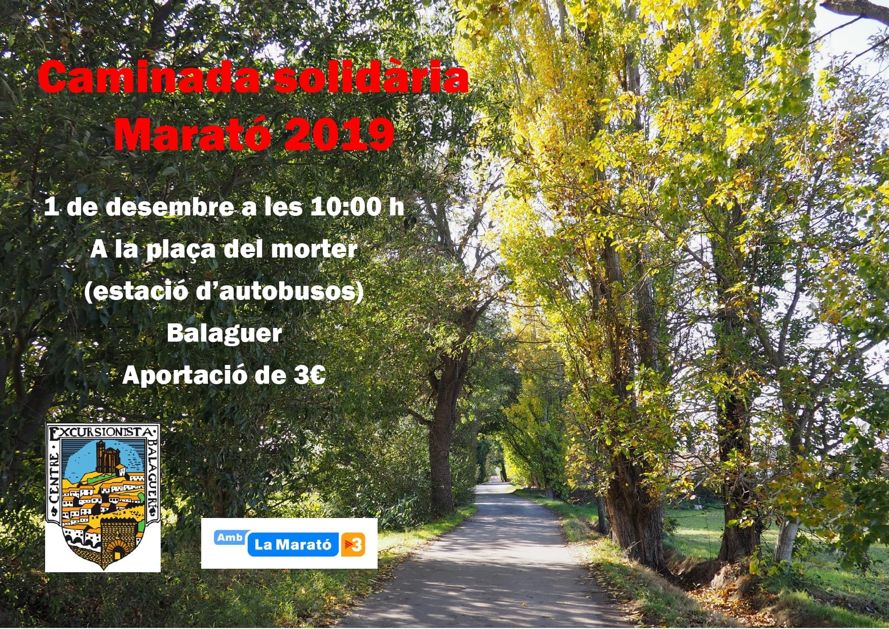 El proper diumenge dia 1 de desembre el Centre Excursionista de Balaguer organitza una Caminada solidaria per recaptar diners per la Marató.