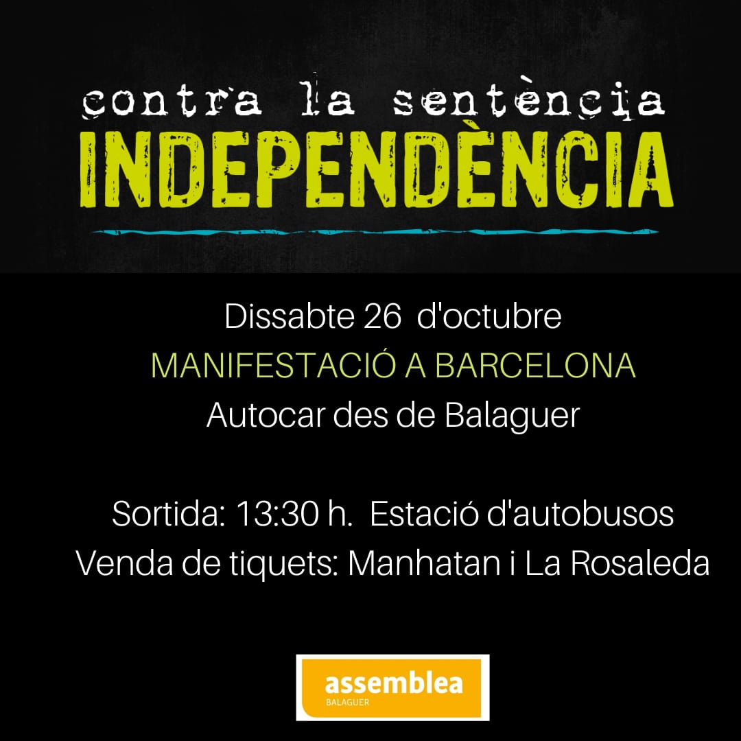 Òmnium i l'ANC convoquen una manifestació aquest dissabte a Barcelona per denunciar la 'repressió' de l'Estat. Des de l'ANC Balaguer s'ha anunciat via xarxes socials que s'estan organitzant autocars