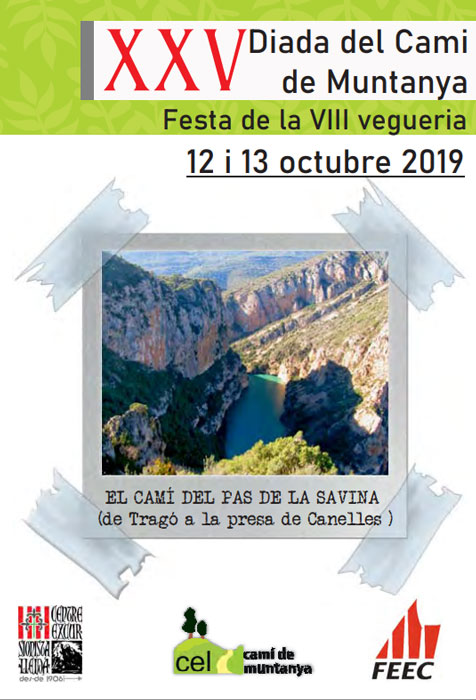El Centre Excursionista de Lleida celebrarà la XXV Diada del Camí de Muntanya amb una sortida per netejar i arranjar el camí del Pas de la Savina, entre el municipi de Tragó de Noguera i la presa de Canelles.