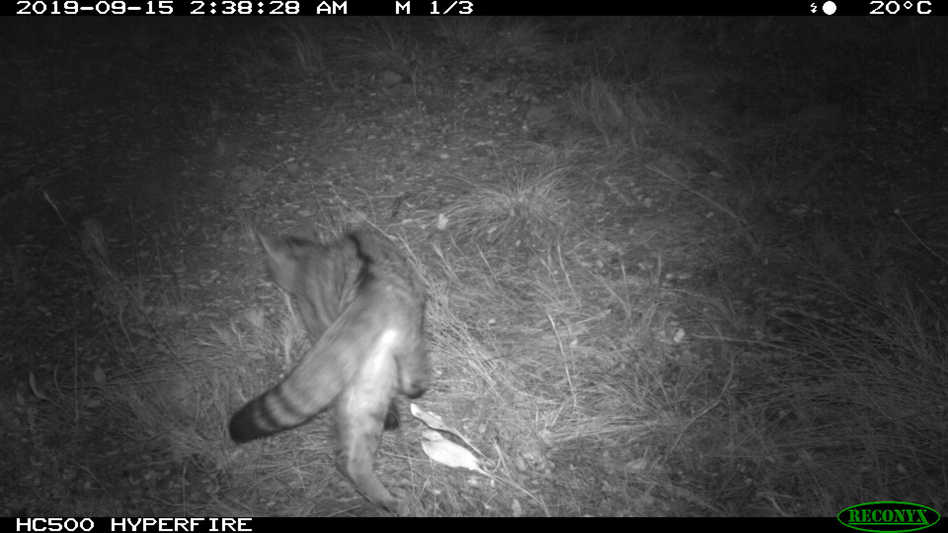 Observat gat salvatge a l'espai natural de la Serra Llarga-Secans de la Noguera. La captura es va fer en el taller de petits mamífers impartit pel biòleg Fermí Sort, mitjançant una càmera de foto-trampeig
