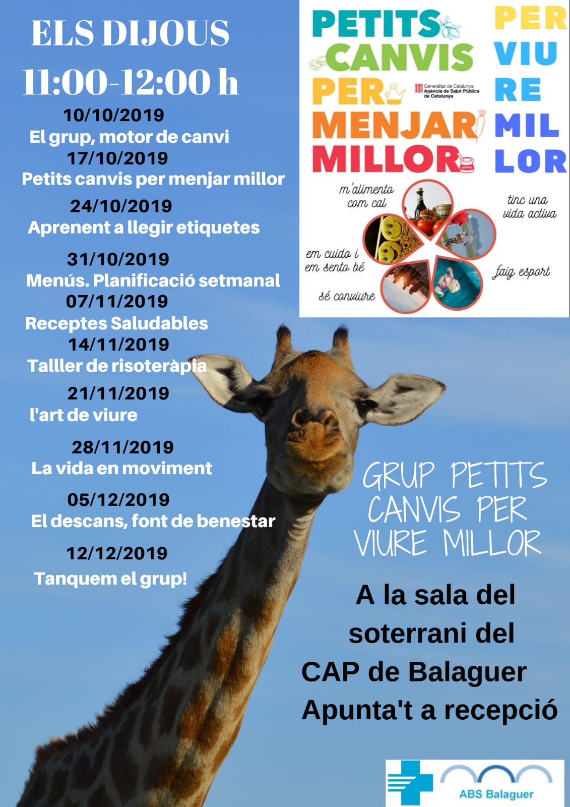El CAP de Balaguer posarà en marxa el proper mes d'octubre el grup anomenat 'Petits canvis per viure millor'. Es tracta d'una iniciativa pionera que pretén recomanar actituds o hàbits alimentaris per a una vida més saludable