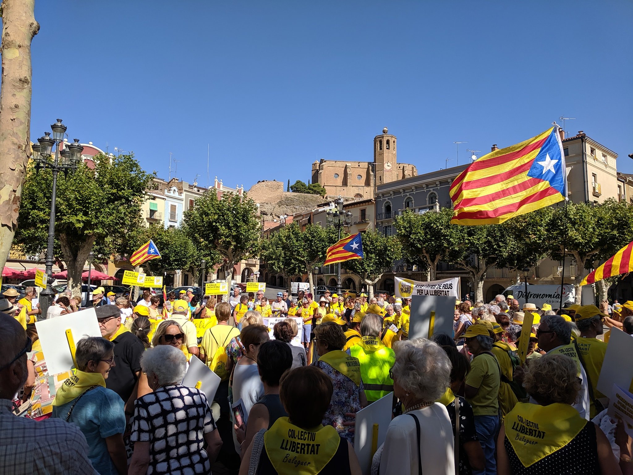 Balaguer s'omple 'd'avis per la llibertat' en la trobada del Col·lectiu Taca d'Oli, que ha estat rebut per les autoritats a la plaça del Mercadal i ha fet la seva marxa reivindicativa per la ciutat. La trobada acabarà amb un dinar de germanor.