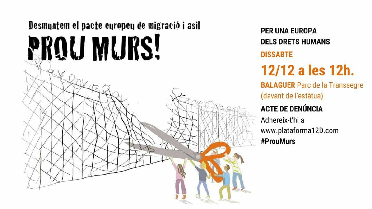 170 entitats se sumen a la plataforma 12D per denunciar la vulneració de drets humans en les polítiques europees de migració i asil. A Balaguer es demana participar dissabte davant l'estàtua del parc de la Transsegre vestits de color negre
