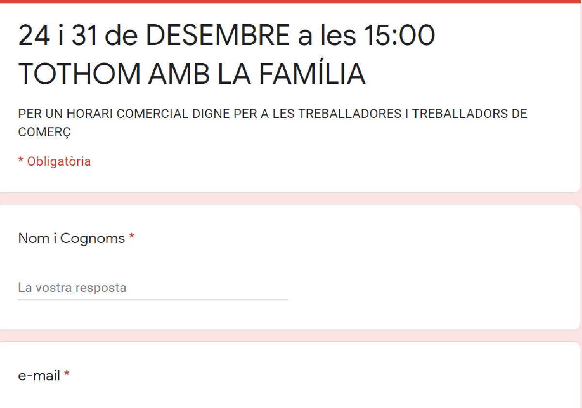 La UGT-Terres de Lleida recull firmes per un horari comercial digne. El sindicat demana que els dies 24 i 31 només s'obri el comerç fins a les 15h