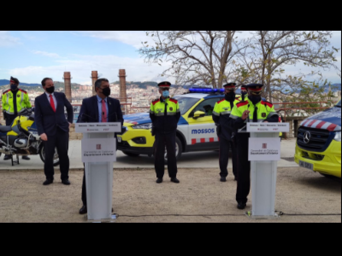 El conseller Sàmper presenta els nous vehicles de trànsit de Mossos d'Esquadra, amb nou disseny, més segurs i menys contaminants. Incorporen per primer cop el color groc que juntament amb el blau i el vermell accentuaran la visibilitat
