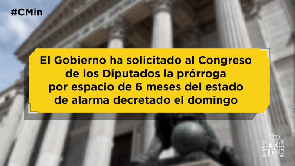 El Consell de Ministres aprova la pròrroga de sis mesos de l'estat d'alarma que sotmetrà al Congrés dijous. Deixa a mans de les comunitats la decisió sobre el toc de queda a partir del 9 de novembre