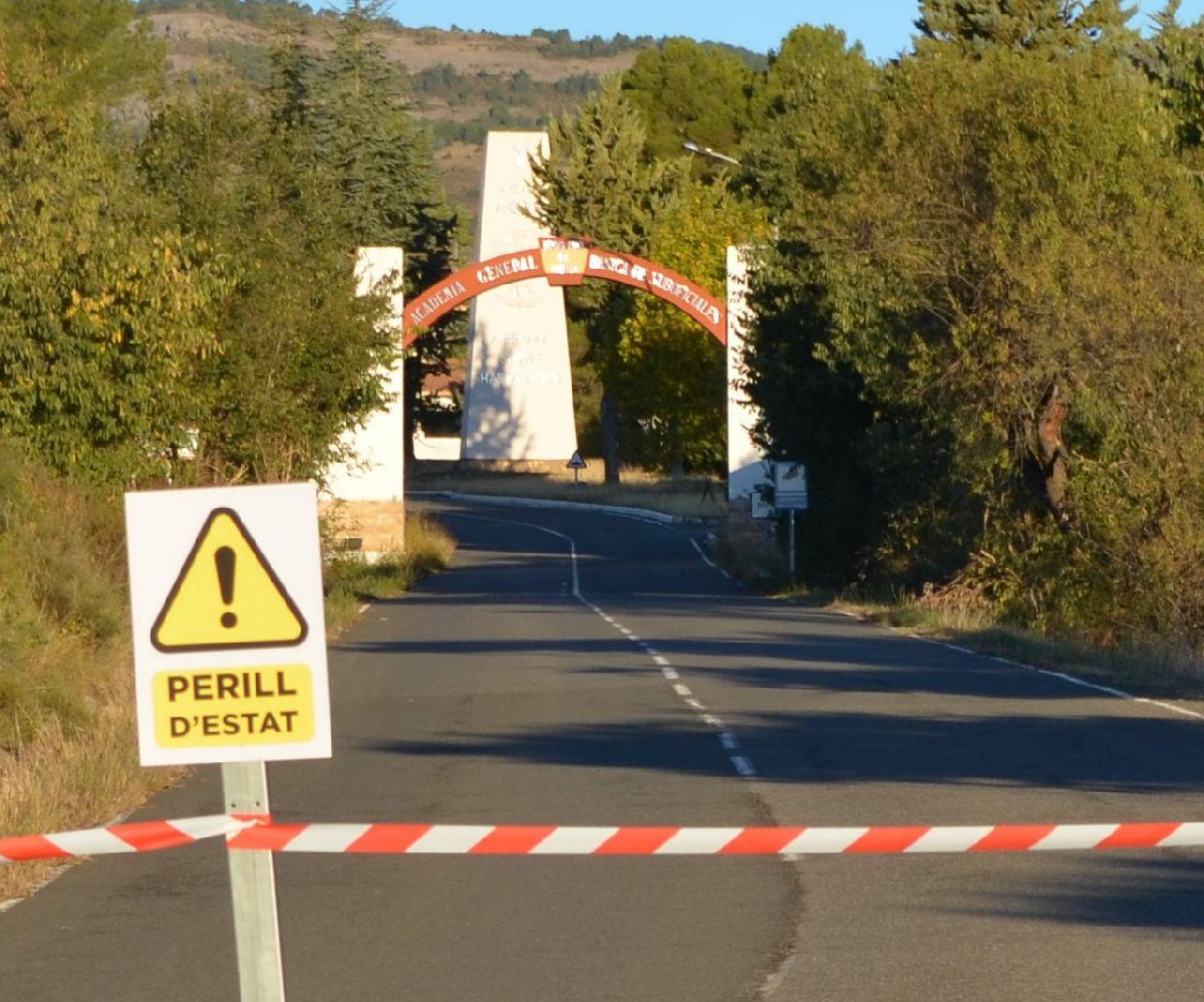 Òmnium Cultural col·loca senyals de 'perill d'Estat' davant edificis militars pel 12-O. Els treballadors de l'entitat mantenen la seva activitat laboral ordinària perquè no hi ha 'res a celebrar'