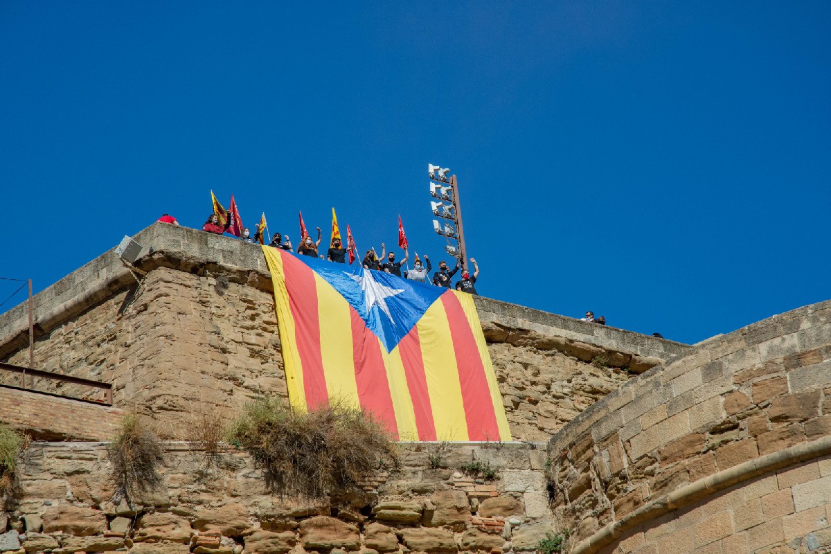 Les joventuts d'ERC despleguen una estelada a la Seu Vella de Lleida per mostrar que el 12-O no tenen 'res a celebrar'. També volen fer visible amb aquesta acció el seu compromís per 'seguir treballant per aconseguir la República Catalana'