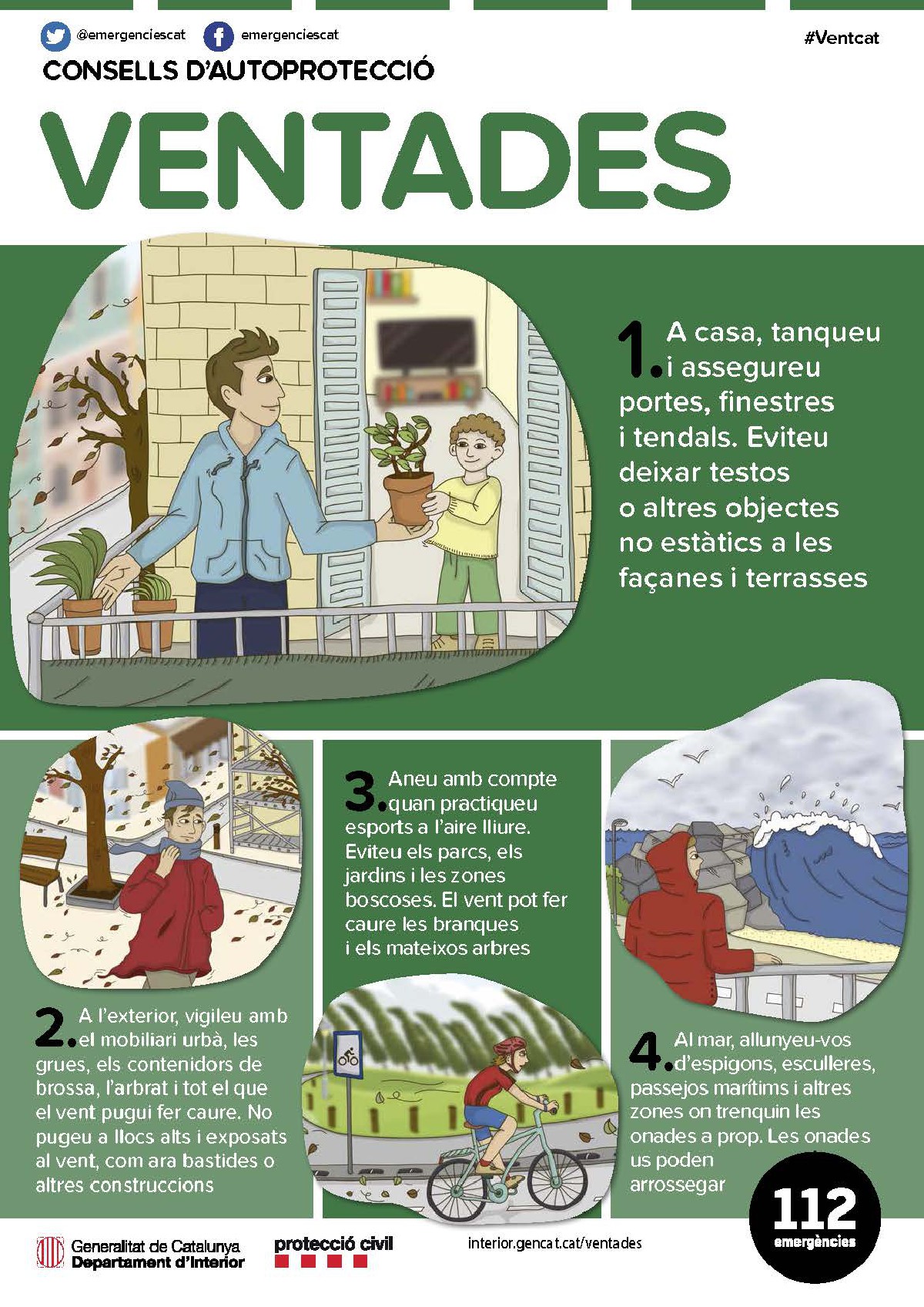 Protecció Civil activa l'alerta del pla VENTCAT per la previsió de forts vents a partir de la matinada. Les comarques afectades són principalment les del Pirineu Occidental, l'Anoia, Alt i Baix Penedès i Barcelonès