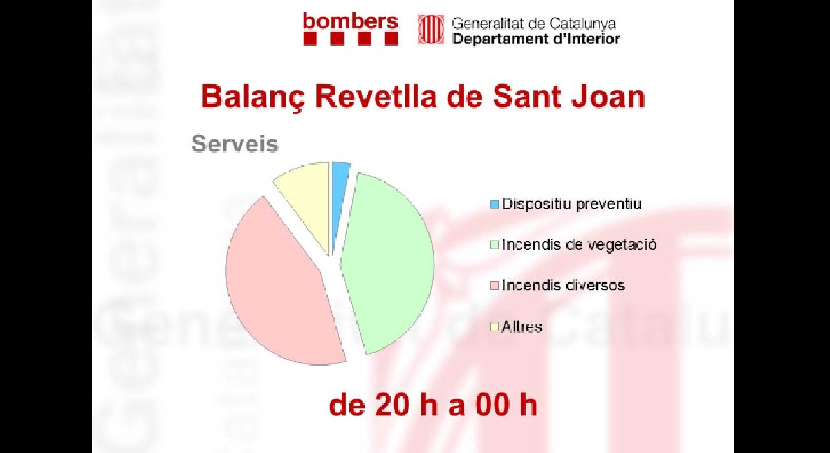 Conseller Buch 'Fem una valoració positiva de la revetlla i Els Bombers de la Generalitat atenen 709 serveis, s'han efectuat un total de 1099 lectures d'alcoholèmia. El telèfon d'emergències 112 ha atès durant la revetlla 4.116 trucades