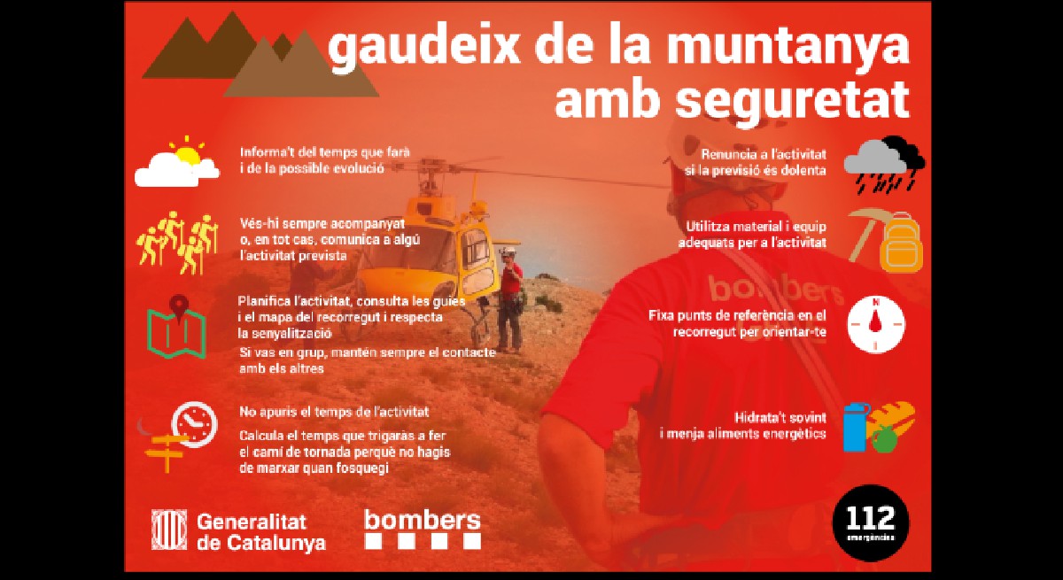 Els Bombers de la Generalitat han treballat en diferents serveis aquest Sant Joan amb força activitat a la muntanya. De manen molta prudència en les activitats al medi natural i recorden els consells bàsics de seguretat a la muntanya
