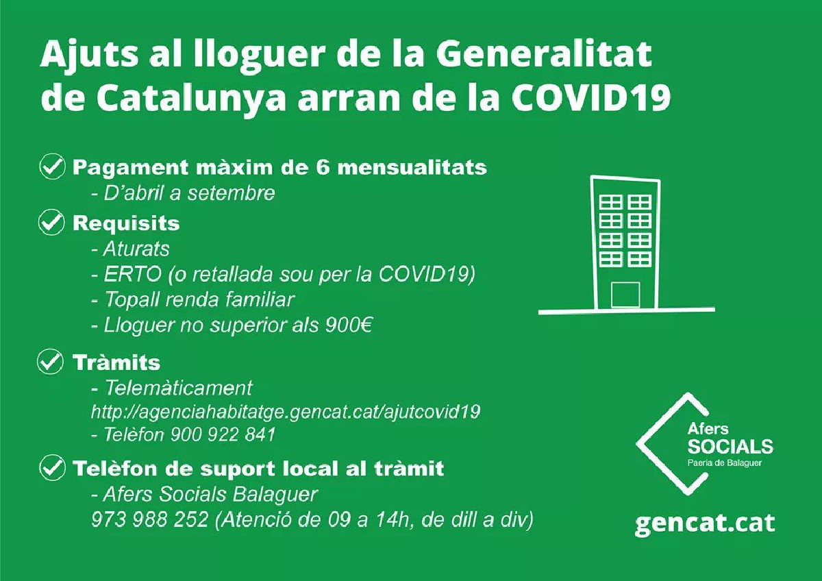El Govern obre la convocatòria d'ajuts al pagament del lloguer per al 2020