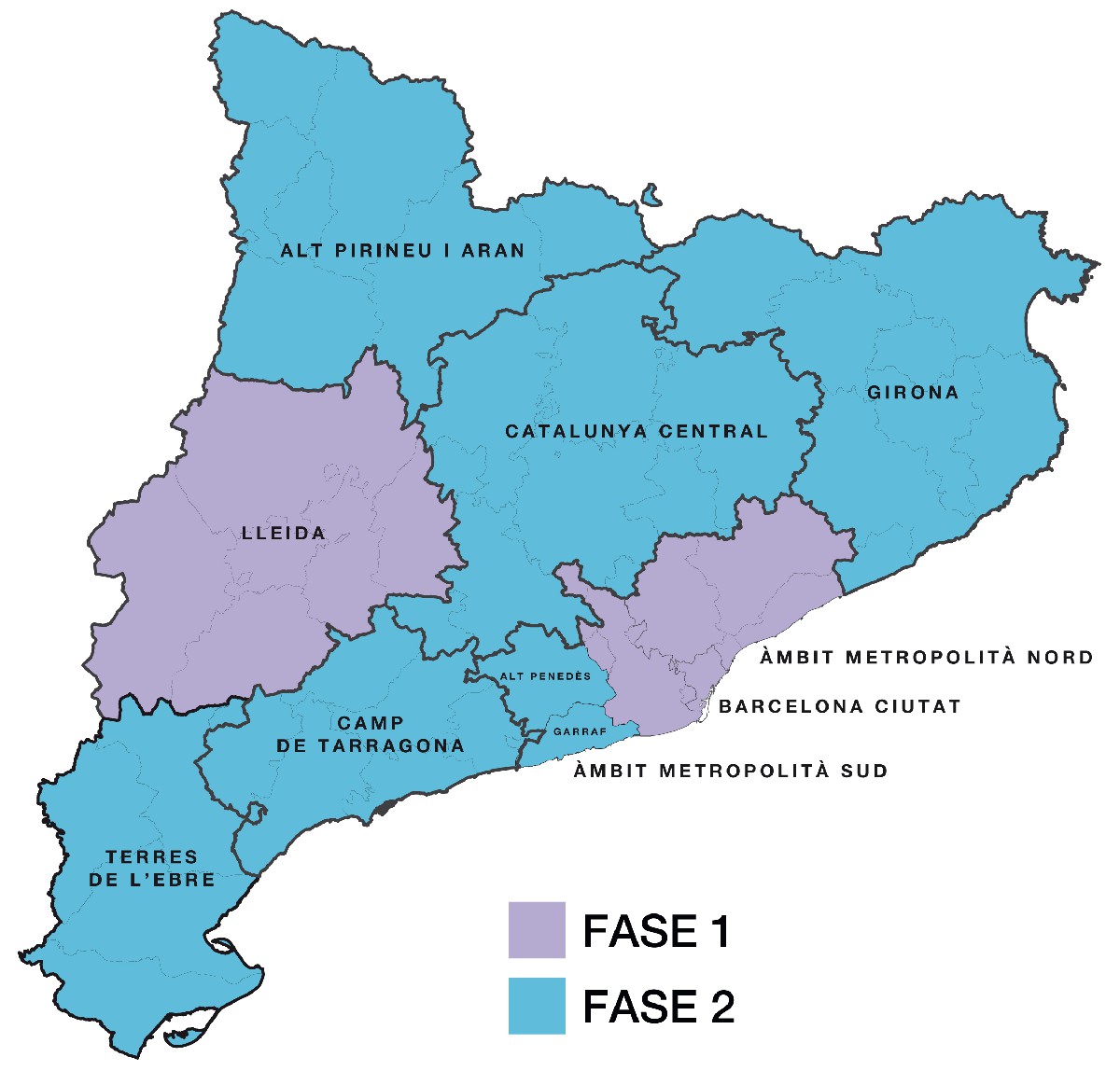 L'àrea metropolitana serà una sola regió a partir de dilluns i Girona, Centrals, Alt Penedès i Garraf passaran a fase 2. El govern espanyol avala la proposta de la Generalitat i només seguiran en fase 1 les regions de Barcelona i Lleida