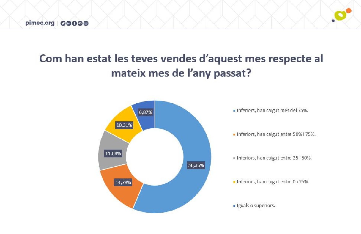 PIMEComerç constata l'important davallada d'ingressos en el sector del comerç aquests darrers mesos. Més de la meitat dels consultats consideren que les vendes han caigut més d'un 75%.