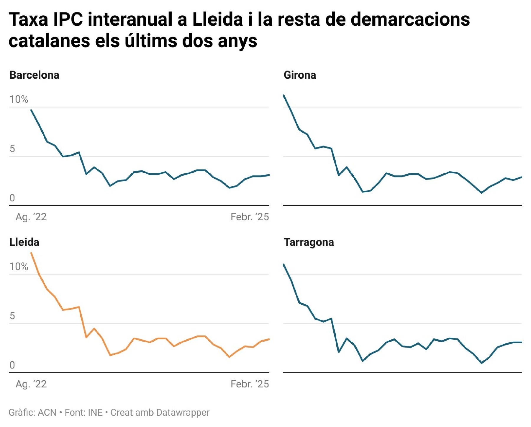 Els preus pugen dues dècimes al febrer a Ponent i l'Alt Pirineu i Aran i se situen al 3,4%. L'augment de l'IPC ve marcat per l'encariment de l'electricitat, que és un 8,8% més cara que fa un any