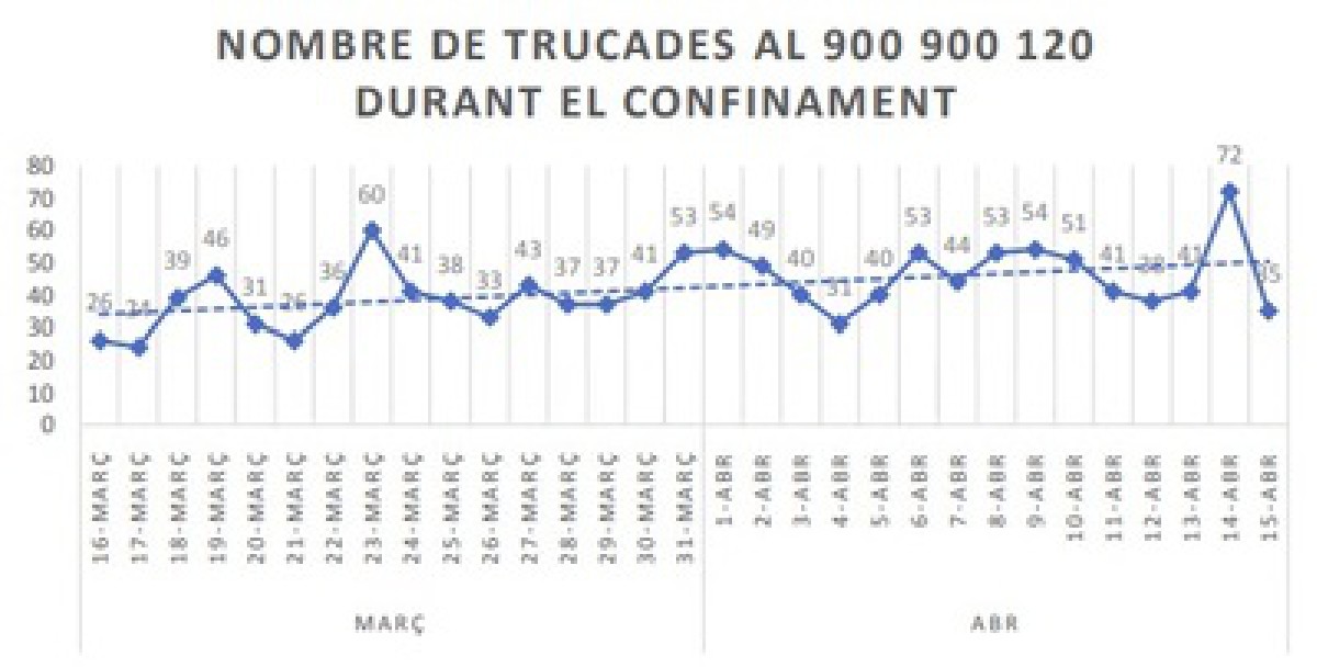 Les trucades al servei 900 900 120 contra la violència masclista s'han incrementat un 60% en confinament. A la regio de Ponent es van registrar 55 trucades en un mes