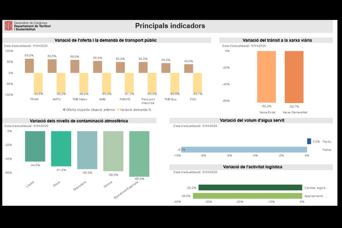 El Govern ofereix noves dades obertes sobre l'impacte de la COVID-19 a Catalunya. Les dades publicades corresponen als àmbits de medi ambient, mobilitat, treball i urbanisme