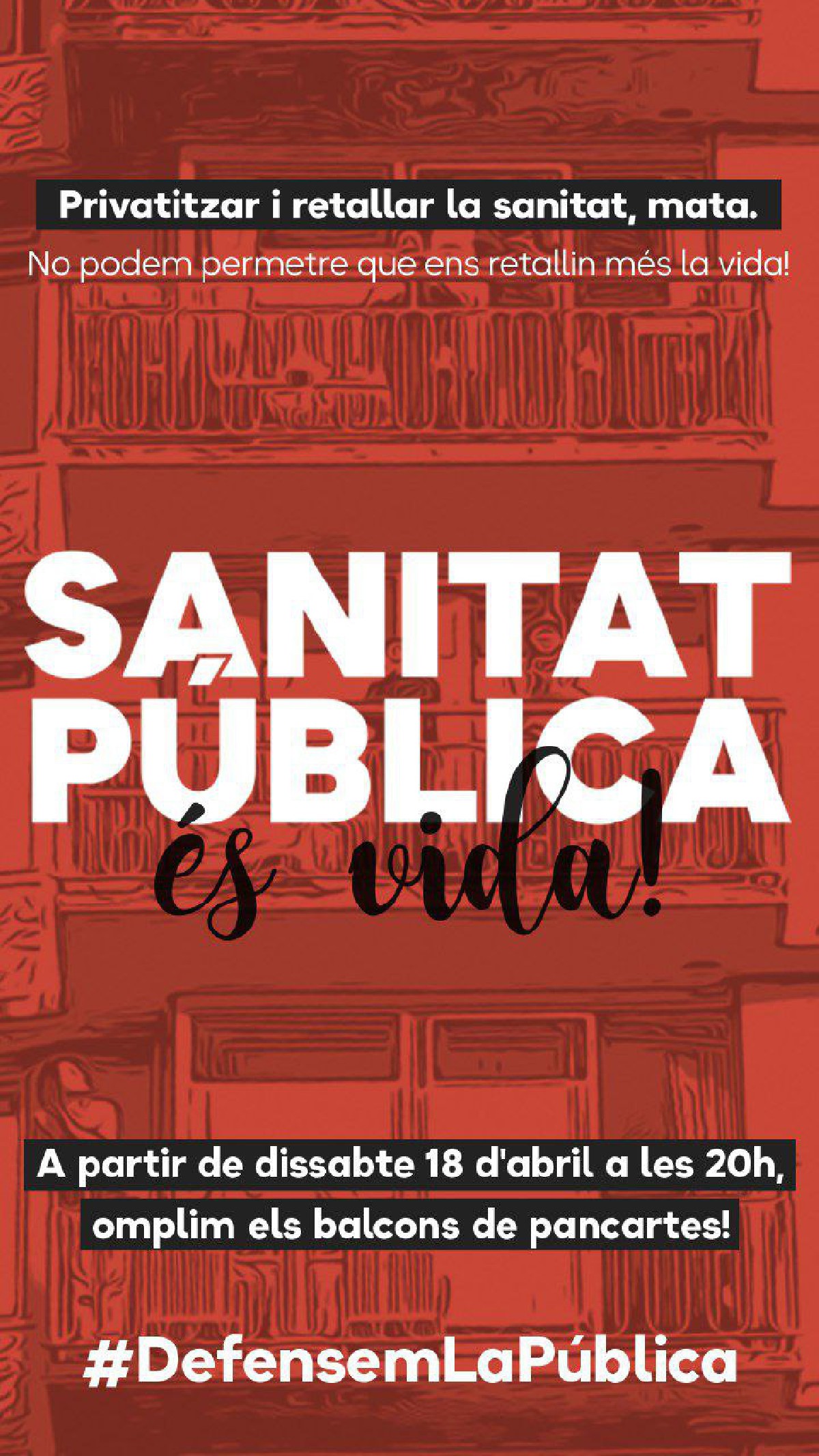 Criden a omplir els balcons' de pancartes en defensa de la sanitat pública i contra les retallades. Una campanya demana els catalans sumar la reivindicació al suport al personal sanitari