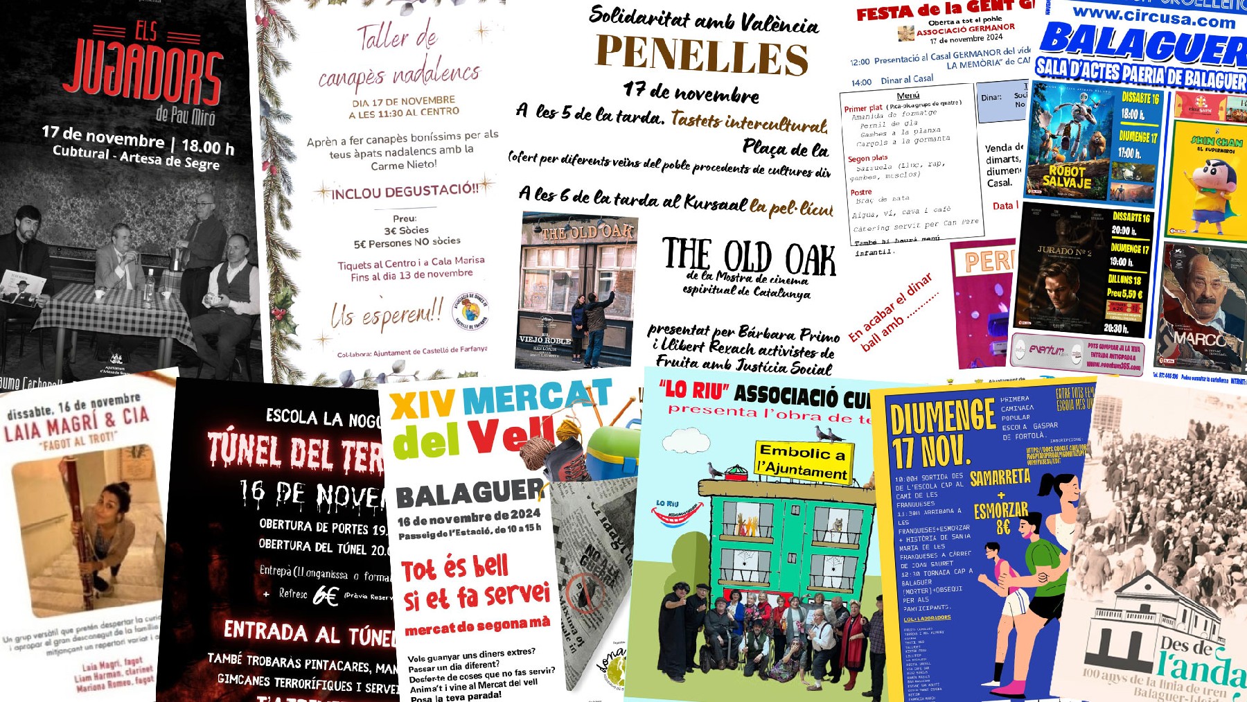 Balaguer celebra aquest dissabte el Mercat del Vell i al vespre es representarà l'obra Embolic a l'ajuntament' al Teatre Municipal. A Comarca hi ha propostes musicals, teatrals, socials i fins i tot benèfiques