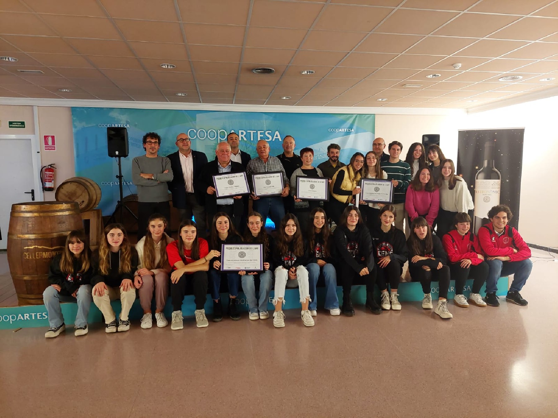 Artesa de Segre (La Noguera)-. Celler Montsec (Agropecuària d'Artesa de Segre SCCL) i la revista local La Palanca han fet entrega, aquest divendres 25 de novembre, dels premis Espinjoladors i Espinjoladores de l'any. Un guardó que premia persones o entitats vinculades al municipi d'Artesa de Segre o bé lligades al món del vi, que han destacat al llarg de l'any, en aquesta ocasió, del 2022. EI premi rep el nom del verb Espinjolar, que és l'acció de punxar la bóta del primer vi de la collita, és a dir, la bóta del vi novell. També fa referència al fet de ser el primer, d'empènyer o destacar en algun camp. En aquesta nova edició s'han mantingut les 5 categories de l'any passat: categoria jove; individual; col·lectiva; d'honor i cooperatiu. Els guanyadors han estat els següents: