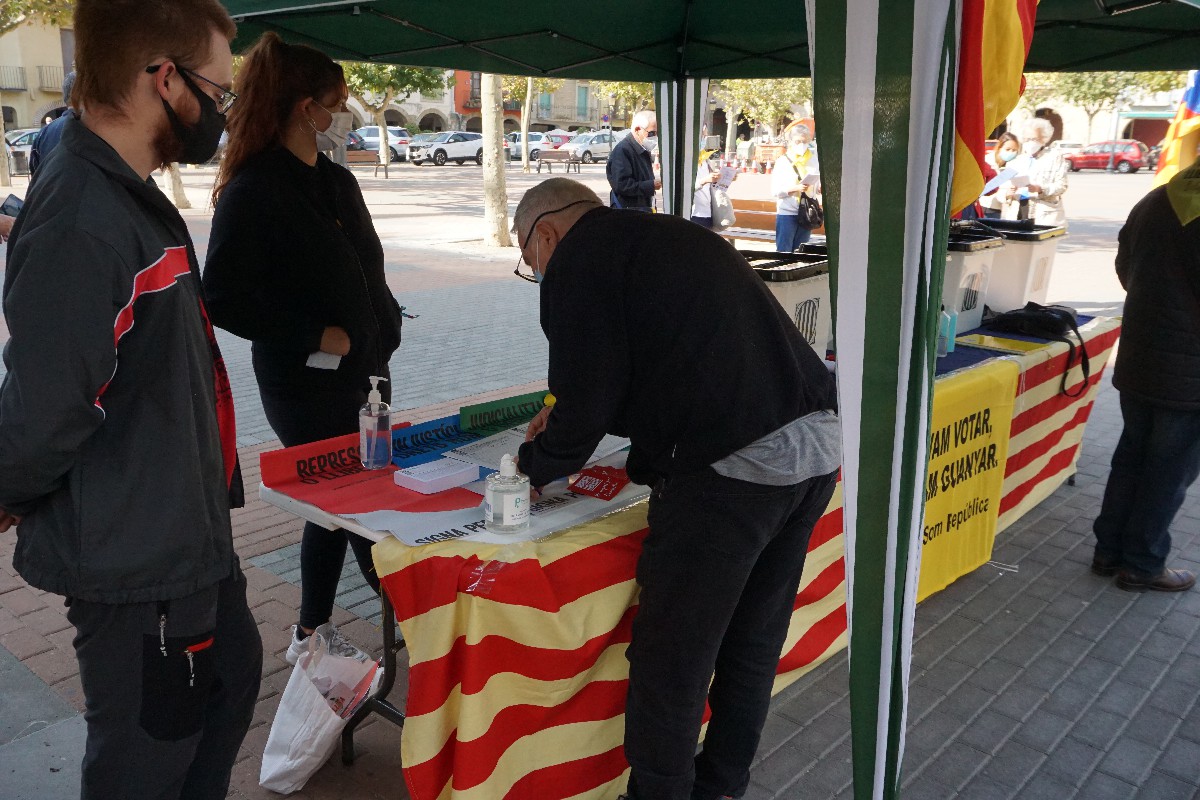 La instal•lació de la parada amb les urnes ha coincidit amb la trobada del Col•lectiu Llibertat, que un dijous més, s'ha reunit a la plaça Mercadal per cantar a favor de la llibertat dels presos, alguns dels seus membres han aprofitat per signar també a favor de l'amnistia.