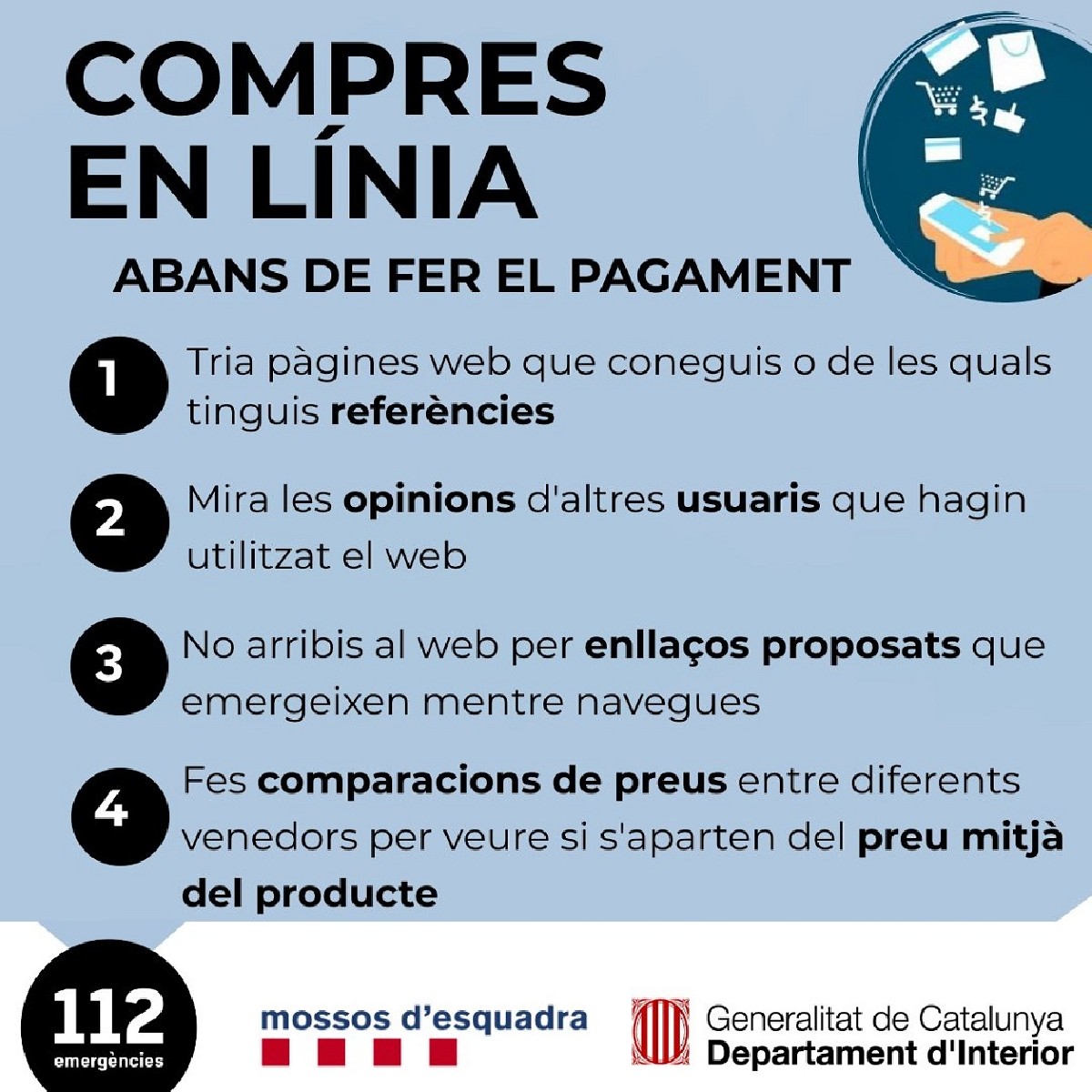 Compres en línia segures - Consells de seguretat Mossos d'Esquadra La Noguera