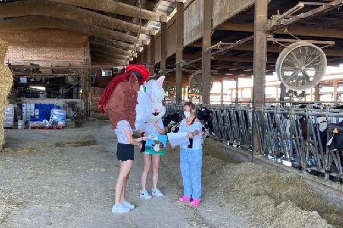 Terra de ramaders i pagesos, les dos mascotes s' han desplaçat fins a la finca de Roser Serret, que tota la vida ha treballat amb vaques de llet. Ja ho feien el seu pare i el seu avi.