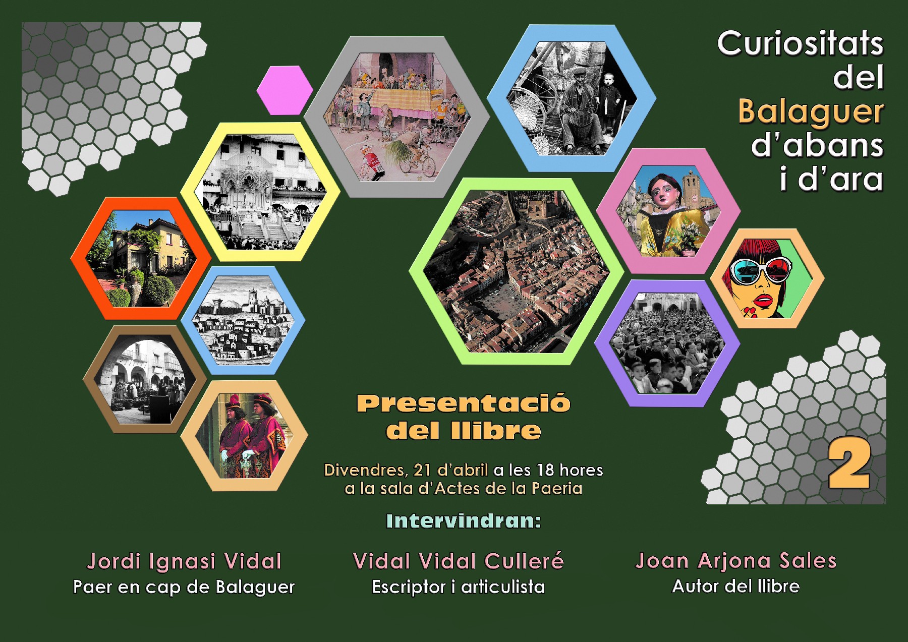 El divendres 21 d'abril a les 6 de la tarda a la sala d'actes de la Paeria tindrà lloc la presentació del llibre Curiositats del Balaguer d'abans i d'ara 2 escrit per Joan Arjona Sales. L'acte comptarà amb la presència del Paer en cap de la ciutat Jordi Ignasi Vidal, l'escriptor i columnista del diari Segre, Vidal Vidal i del mateix autor.