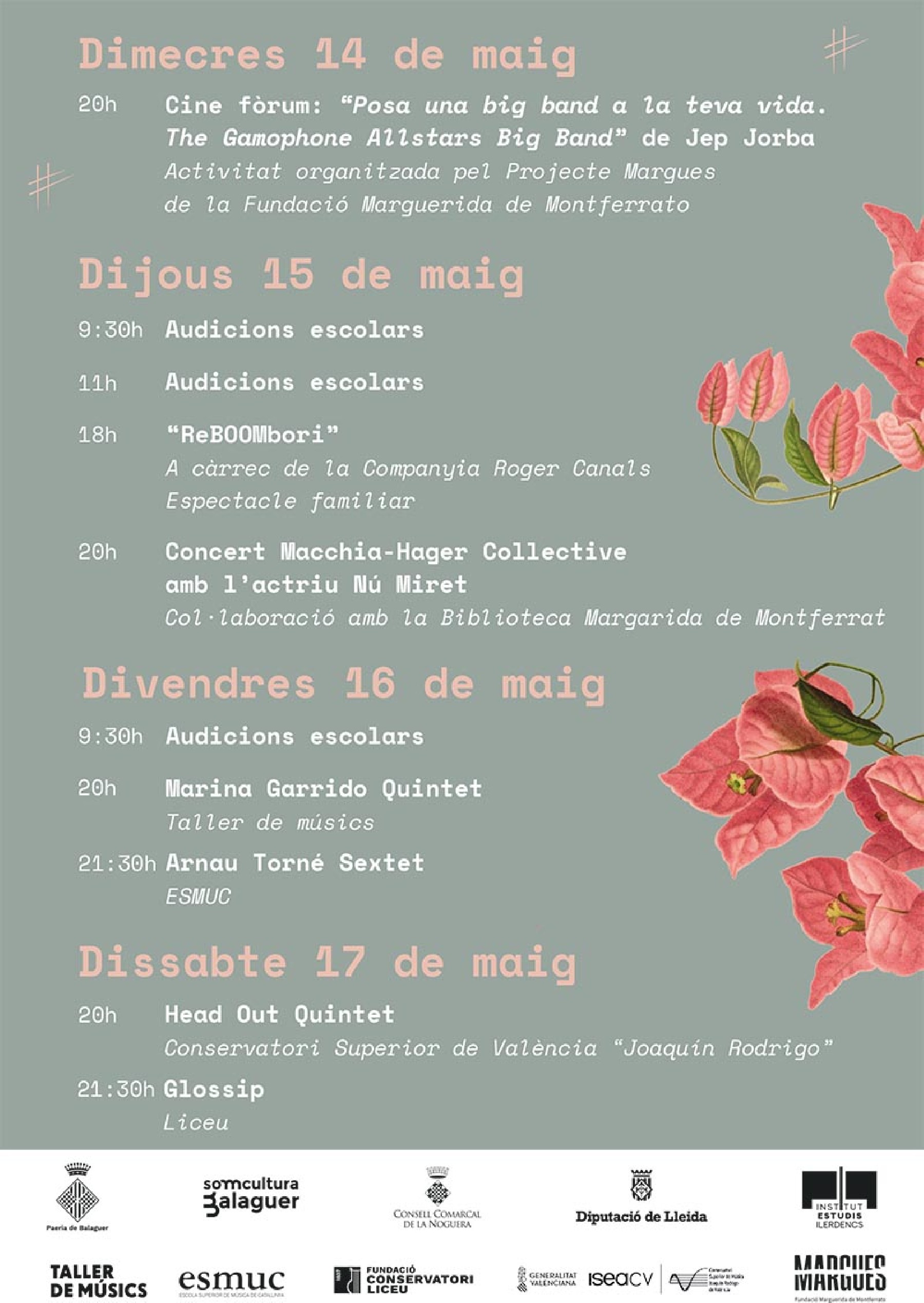 Finalment, el dissabte dia 17 de maig actuarà Head Out Quintet, un grup format per estudiants del Conservatorio Superior de Música Joaquín Rodrigo de València.