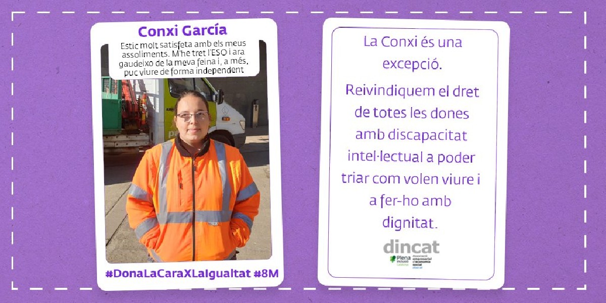Dincat i ALLEM denuncien que aquesta realitat, encara avui, no està prou reconeguda, ni estudiada, i, per tant, cal que es recullin les dades que evidenciïn que la interseccionalitat de les variables gènere, discapacitat i ocupació actuen com a factors de discriminació per a l'exercici dels drets laborals de les dones amb discapacitat intel·lectual