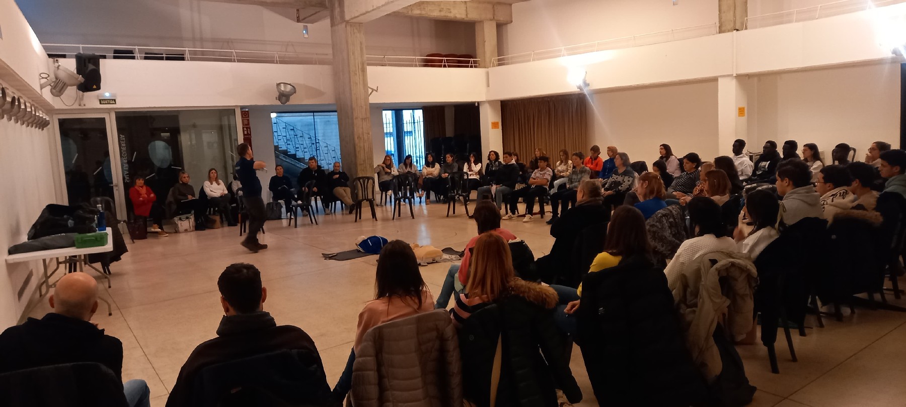 El taller, que ha comptat amb l'assistència de prop de 60 persones, ha estat impartit per Neosalus i ha abordat aspectes essencials com la cardioprotecció, el protocol PAS (Protegir, Avisar, Socórrer), l'ús del desfibril·lador DEA i la realització de maniobres de reanimació cardiopulmonar (RCP).
