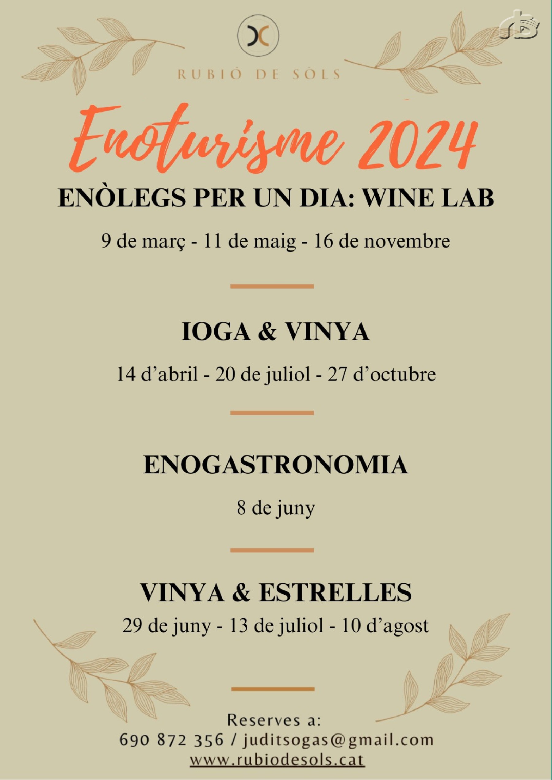 -Ioga i Vinya: és una activitat lúdica especialment per gaudir de la pràctica del ioga, la vinya rodejats de natura i paisatge.