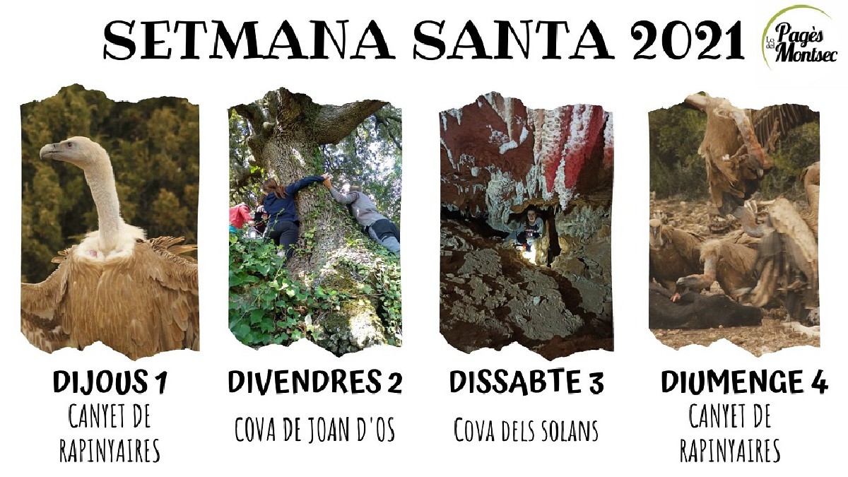 Des del dijous dia 1 al diumenge dia 4 han programat 4 sortides diferents; al Canyet de rapinyaires, a la cova de Joan d'Os i a la cova del Solans.