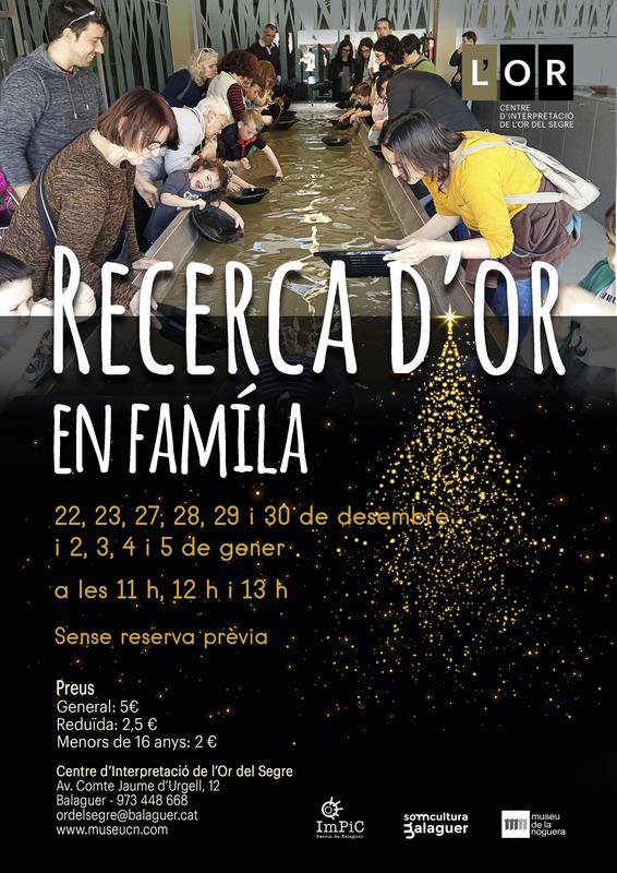 El Centre d'Interpretació de l'Or del Segre de Balaguer organitza novament durant aquest festes de Nadal, del 22 al 5 de gener, l'activitat,'Recerca d'Or en família'.