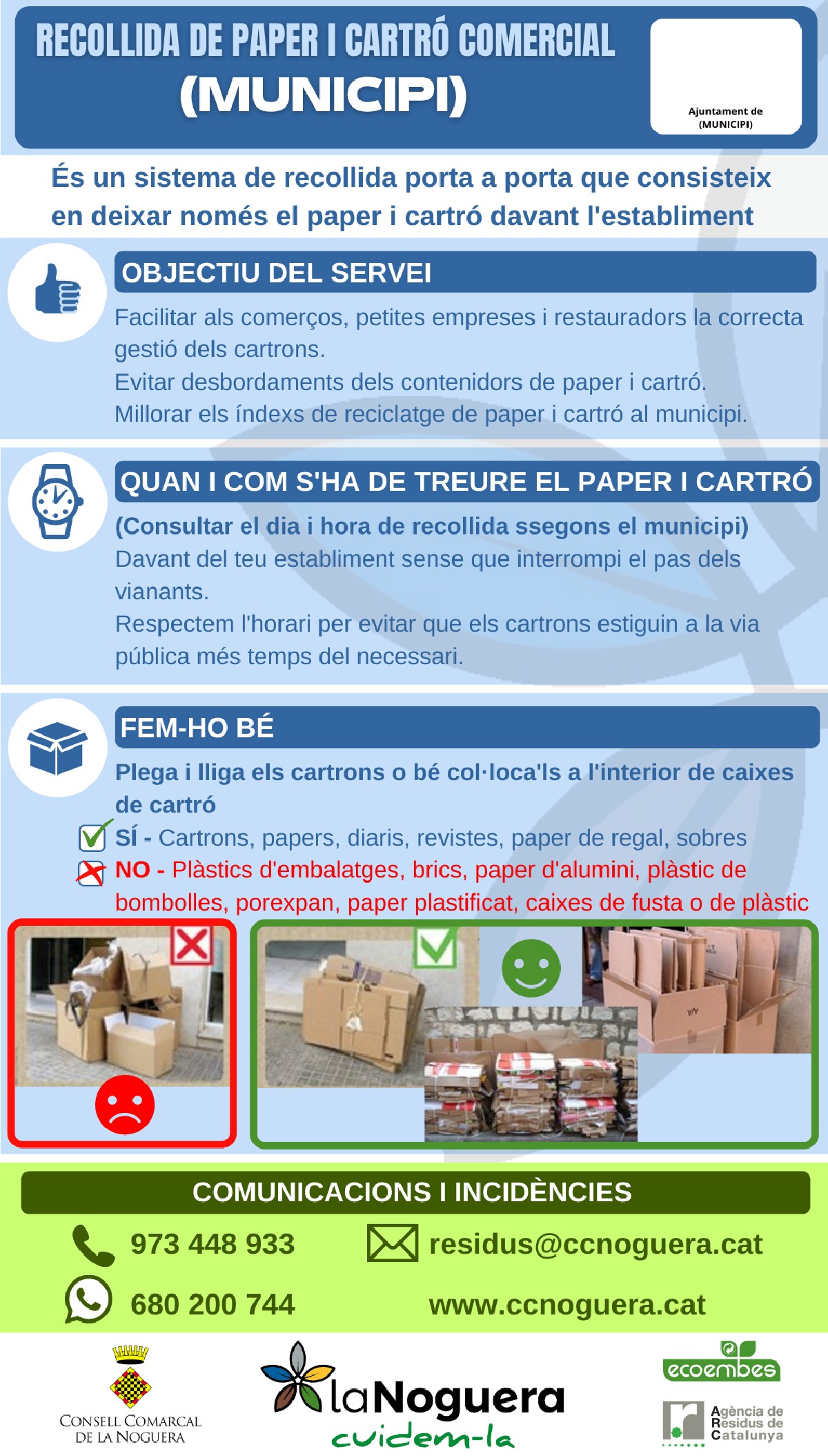El Consell Comarcal de la Noguera amplia el servei de recollida porta a porta de cartró i paper comercial a més municipis