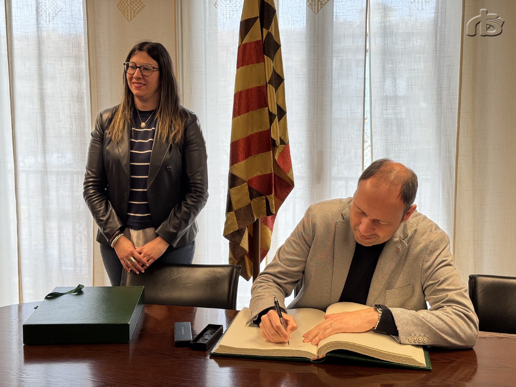Durant la seva estada a la casa de la Paeria, el conseller, com és tradicional, ha signat el Llibre d'Or de la ciutat.