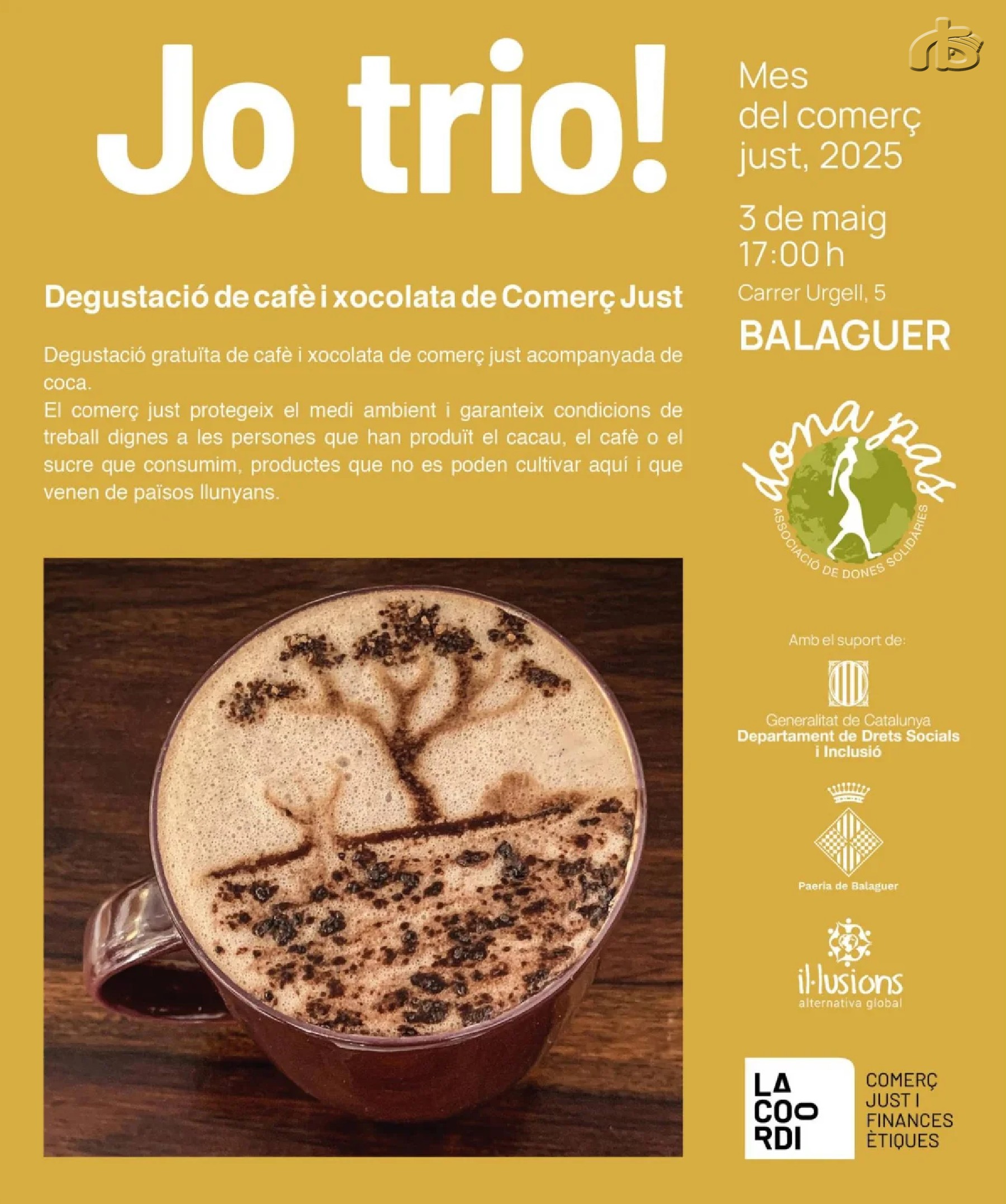 Les activitats començaran a les 17h amb una degustació de cafè i xocolata de Comerç Just, acompanyada de coca.