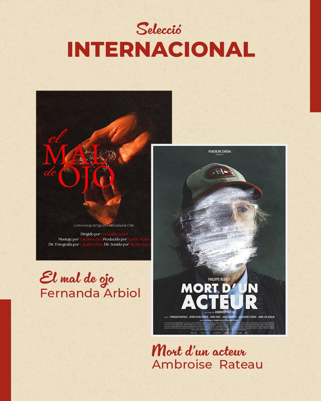 En la Versió Original en Català es projectaran: Còlera, de José Luís Lázaro; i El mal donat, de Alfons Casal i Héctor Mas. En la Selecció Internacional: El mal de ojo, de Fernanda Arbiol; i Mort d’un acteur, d’Ambroise Rateau. En Curts Musicals: La companyia, de José María Flores; i Orçám, d’Omar Rabuñal Varela.