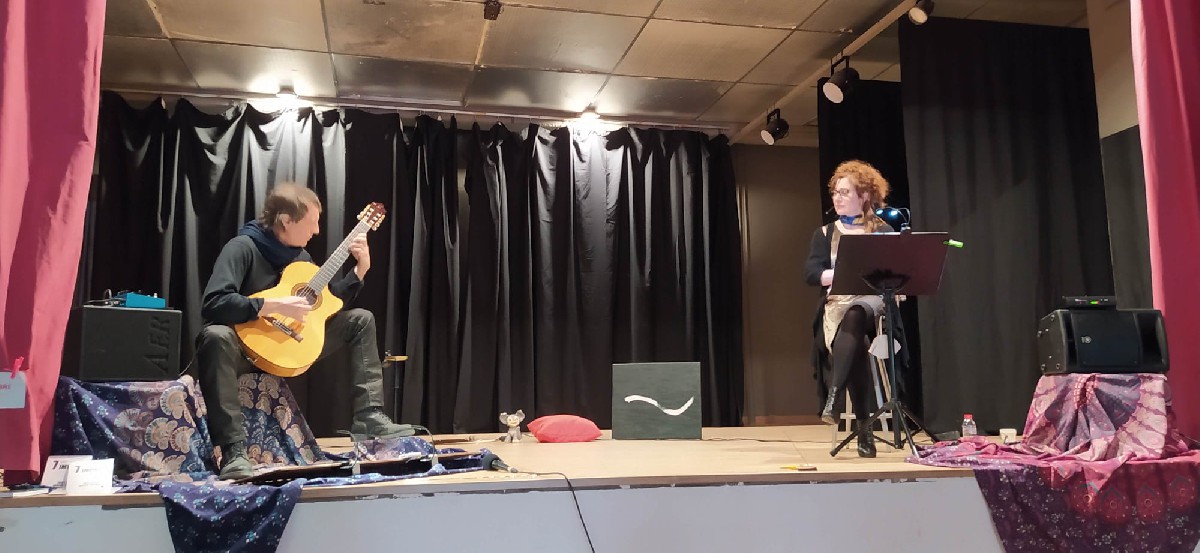 El guitarrista d'Os de Balaguer Josep-Manel Vega ha presentat en directe el seu recital poeticomusical 'Paisatge inacabat i altres poemes' a les Avellanes, Os de Balaguer i Algerri. Ho ha fet en companyia de l'actriu Àngels Bassas