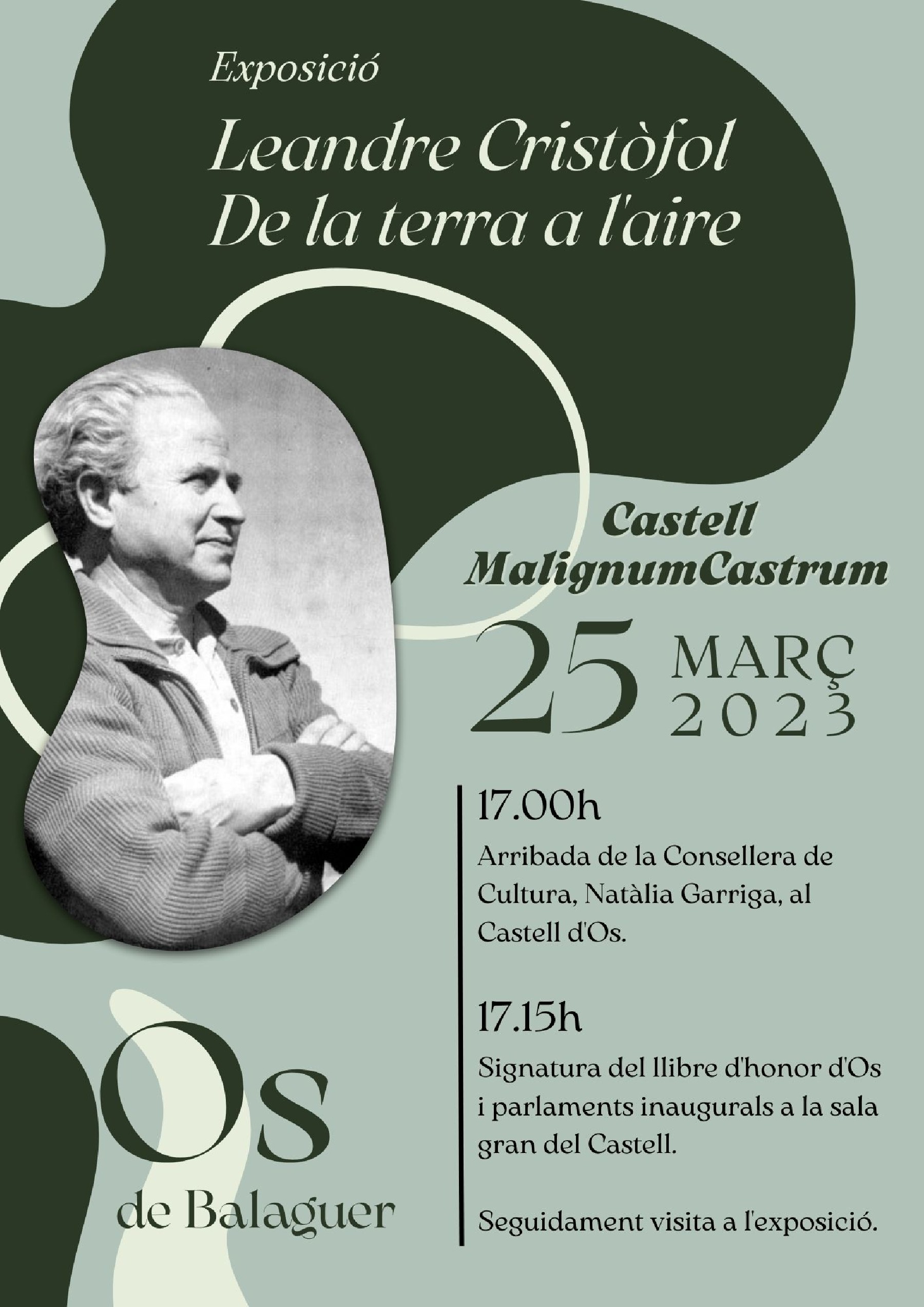 El Malignim Castrum, castell d'Os e Balaguer, estrena des d'aquest dissabte una nova exposició. Es tracta de la mostra 'Leandre Cristòfol, de la terra a l'aire', que serà inaugurada per la Consellera de Cultura, Natàlia Garriga