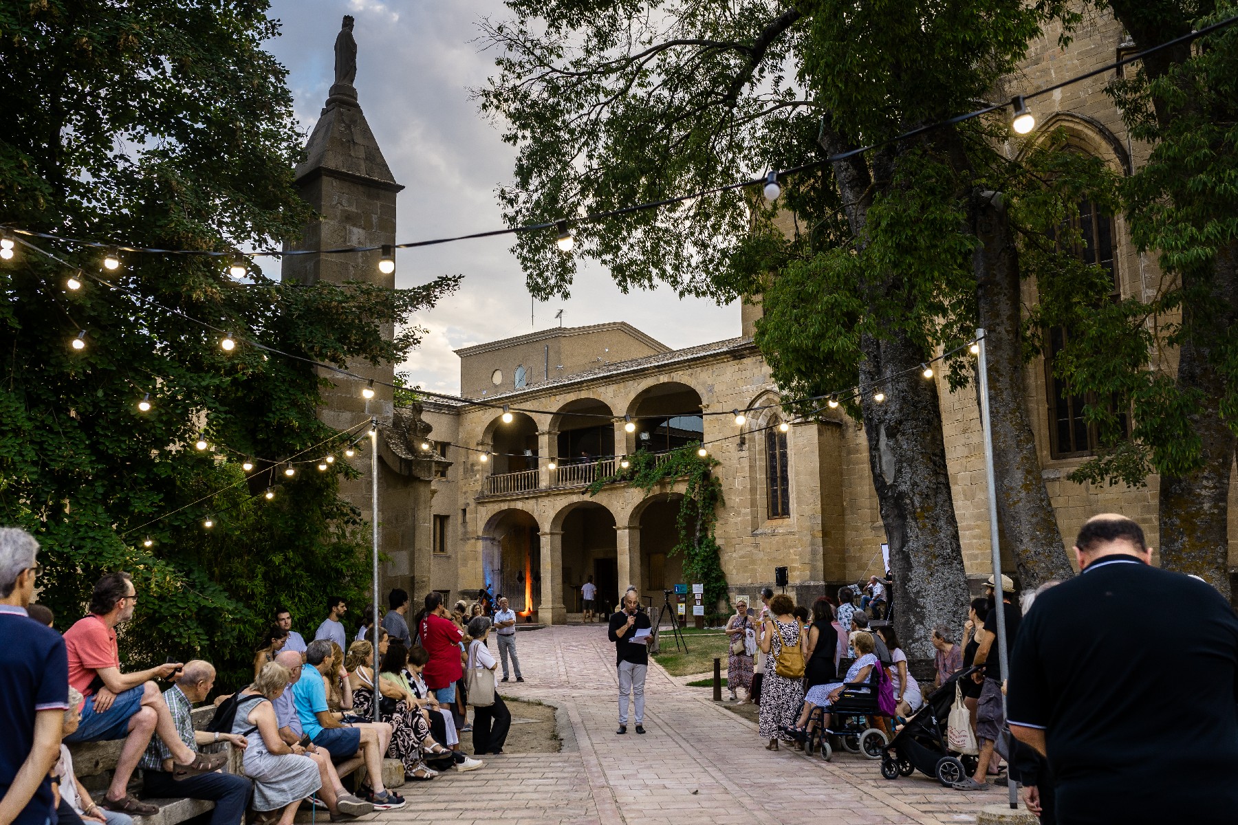 Va encetar l'acte el coreògraf i ballarí de Balaguer, Albert Bonet, acompanyat de la ballarina Vinyet Miró i recitant un text de Josep Àngel Borràs. Passant el relleu a l'actuació del grup Poèticament, musicant poesia i imatge. Tot seguit de la soprano Núria Dardinyà i la violoncel·lista Abril Candelas. Dins de la sala capitular, 10 artistes exposaven les seves obres pictòriques i d'escultura a la Sala Capitular. I al claustre, el pintor Josep Aragonès elaborava en directe un quadre paisatgístic.
