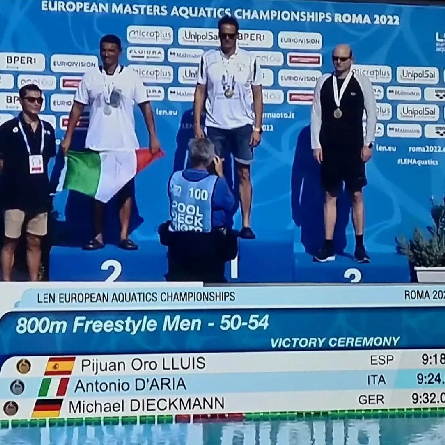 En la seva participació als campionats europeus, també va aconseguir el passat dimecres la Medalla d'Argent en la prova de 3.000 metres d'Aigües Obertes en la categoria Master 50-54, amb un temps de 37:11.4, solament a 9 segons del Campió Europeu, que també es el Campió Mundial, l'italià Fabio Calmasini.