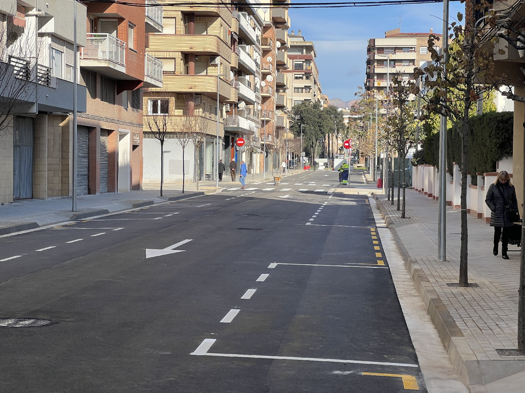 El tram del carrer Barcelona que s'ha millorat, entre el Passeig i el carrer Almatà, serà a partir d'ara serà d'un sol sentit de circulació des de la Plaça de la Sardana fins a la variant i es mantindran les dues línies d'aparcaments.