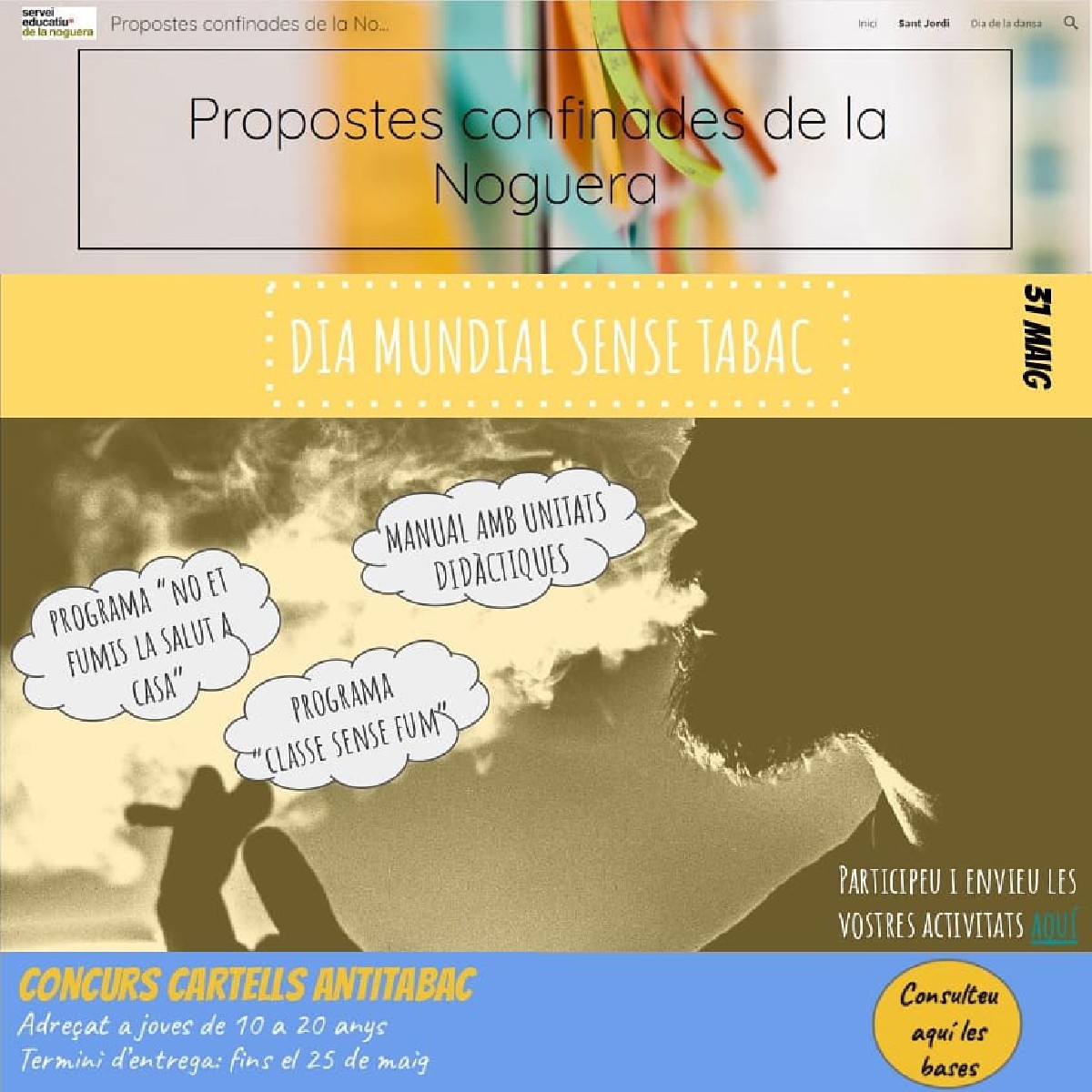 El Servei Educatiu de la Noguera presenta la 6ª proposta confinada. Aquesta setmana estan relacionades amb dos dies mundials: 27 de maig Dia Mundial de la societat de la informació i 31 de maig Dia mundial sense tabac