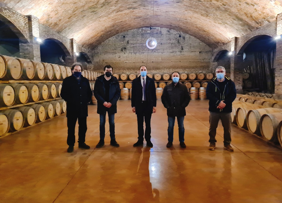 Crespín, acompanyat pel Cap de l'Àrea del Ministeri d'Agricultura, Pesca i Alimentació a Catalunya, José Luís Guarga, i el Cap d'Agricultura de la Subdelegació de Lleida, Jaume Banchs, ha estat rebut pel propietari del celler i president de la DO Costers del Segre, Tomàs Cusiné, amb qui ha recorregut les seves instal·lacions centenàries considerades el celler més antic de Catalunya.
