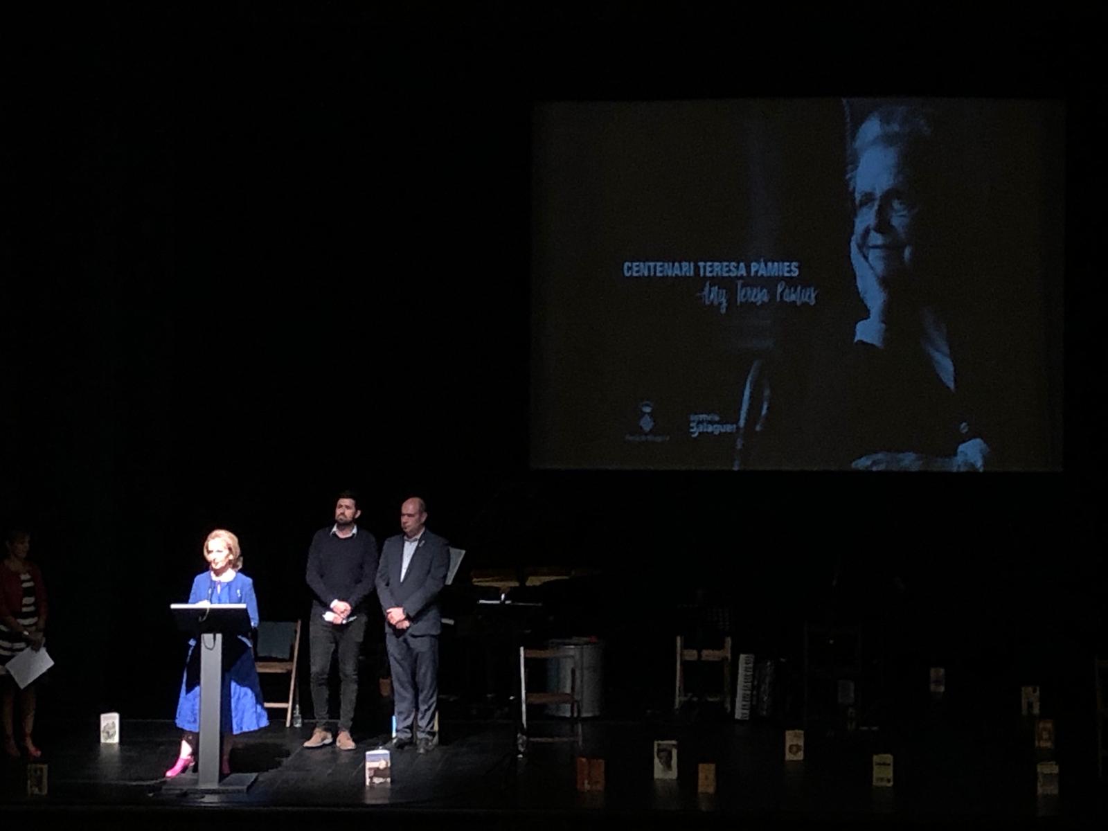 Entre ells, aquest diumenge ha tingut lloc l'acte central al Teatre Municipal amb un homenatge a l'escriptora amb l'espectacle "Teresa Pàmies. La llibertat irrenunciable. Viure i escriure", una producció de BADA-PAS Iniciatives Culturals i sota la direcció d'Enric Arquimbau, espectacle que ja es va fer l'any 2012 amb motiu de la mort de l'escriptora.