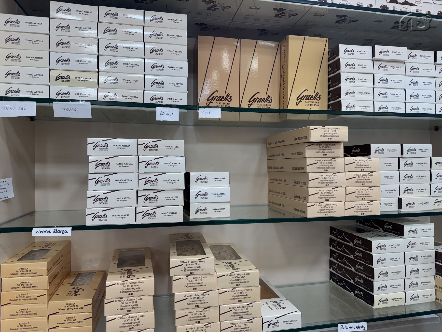 El torró artesà és el rei de les dies previs a Nadal a les pastisseries, on conviu amb altres propostes com les neules, els polvorons o els panettones. A Pastisseria Graells de Balaguer, la seva especialitat són els de Crema Cremada